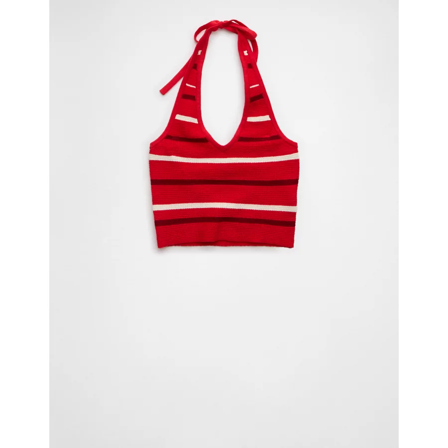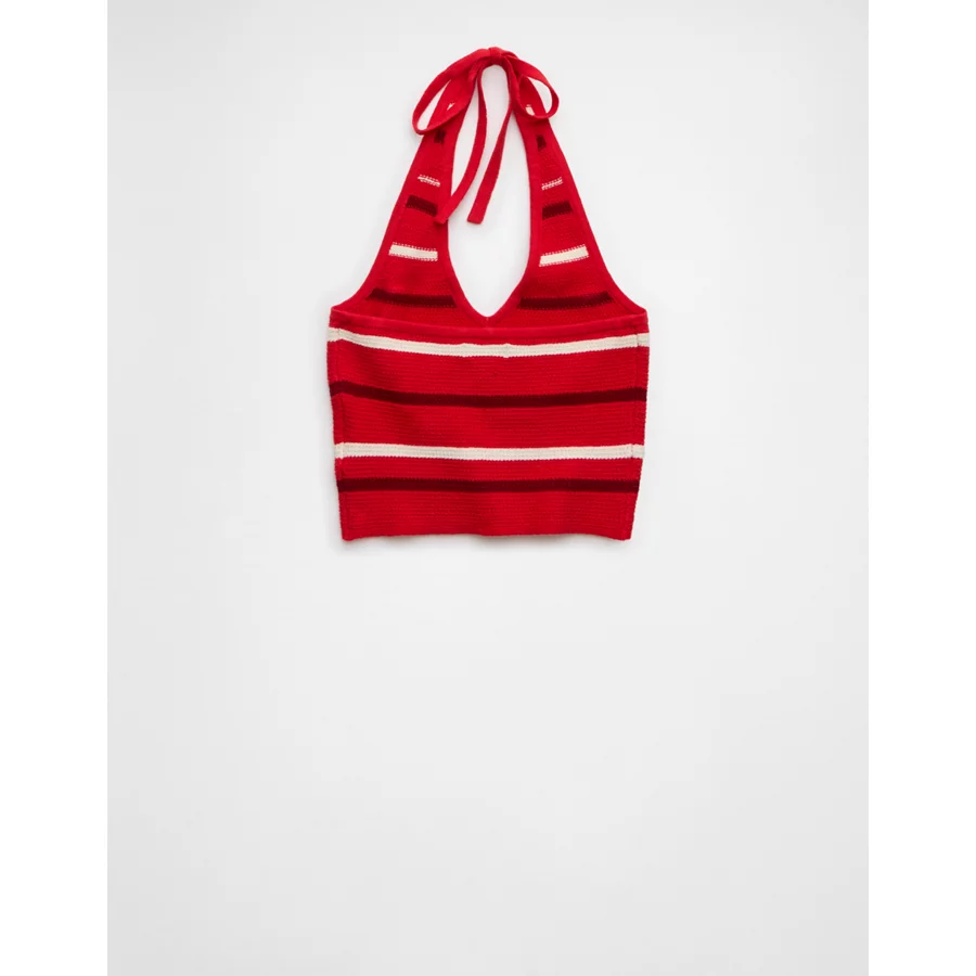 AE Cropped Striped Sweater Halter Top – Cherry