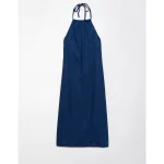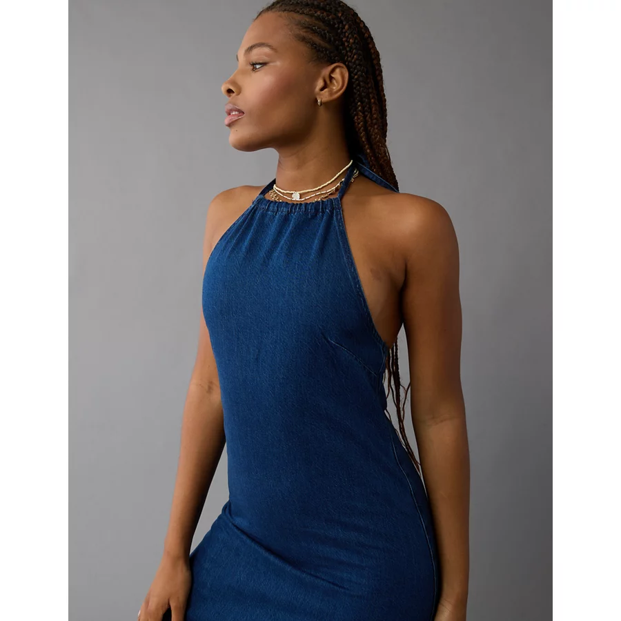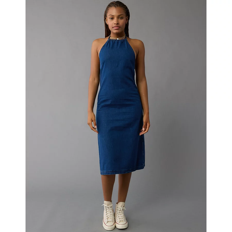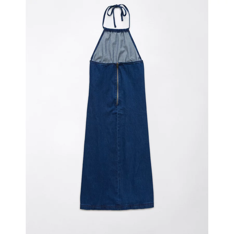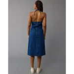 AE Denim Halter Shift Midi Dress – Dark Wash