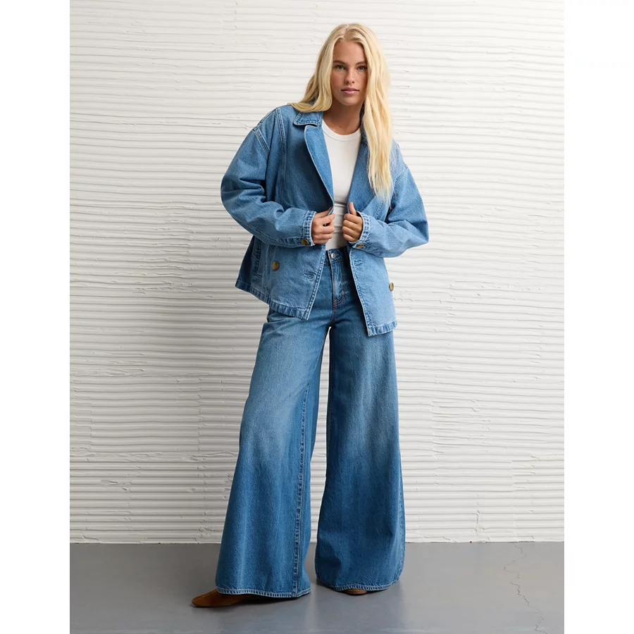 AE Denim Halter Shift Midi Dress - Dark Wash