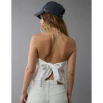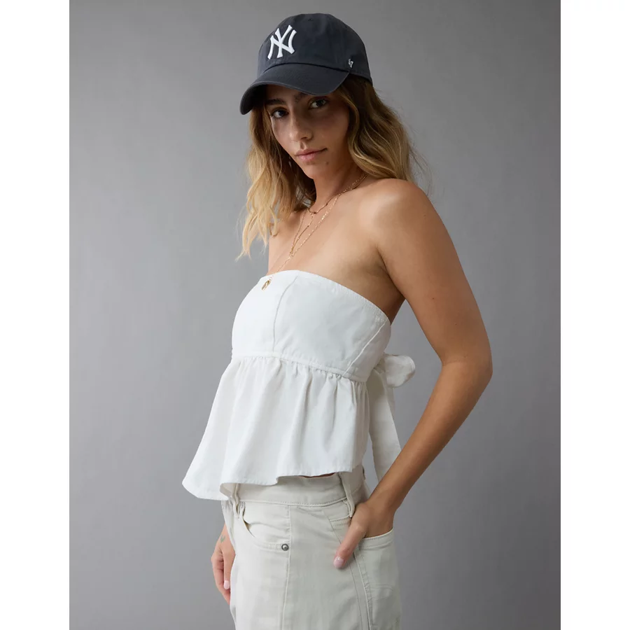 AE Denim Strapless Tie Back Babydoll Top – White