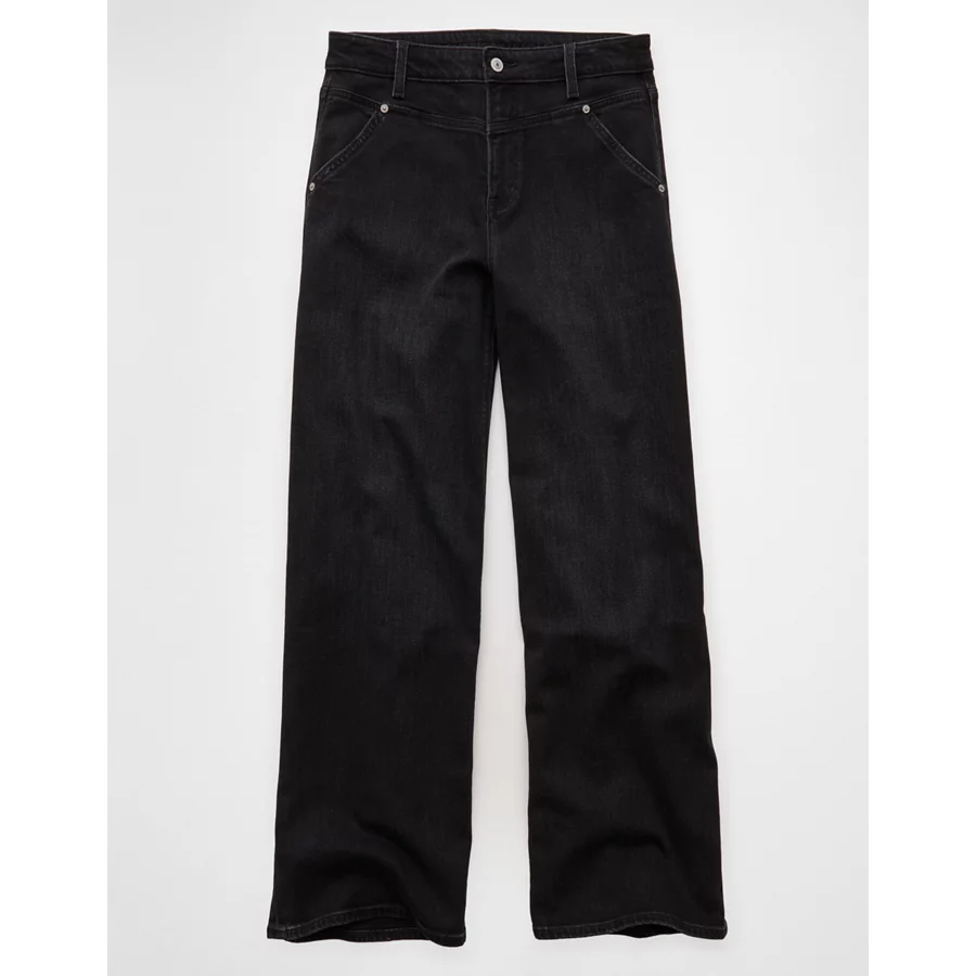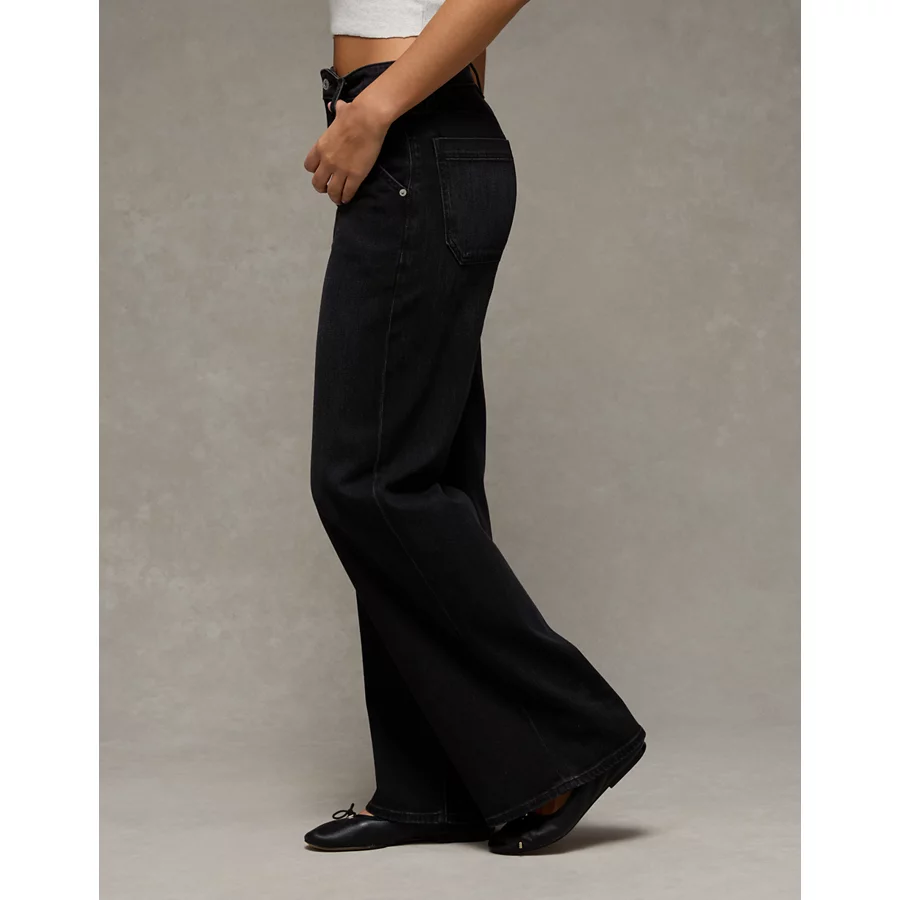 AE Dreamy Drape Stretch Super High-Waisted Baggy Wide-Leg Jean – Black Blaze