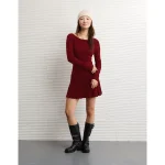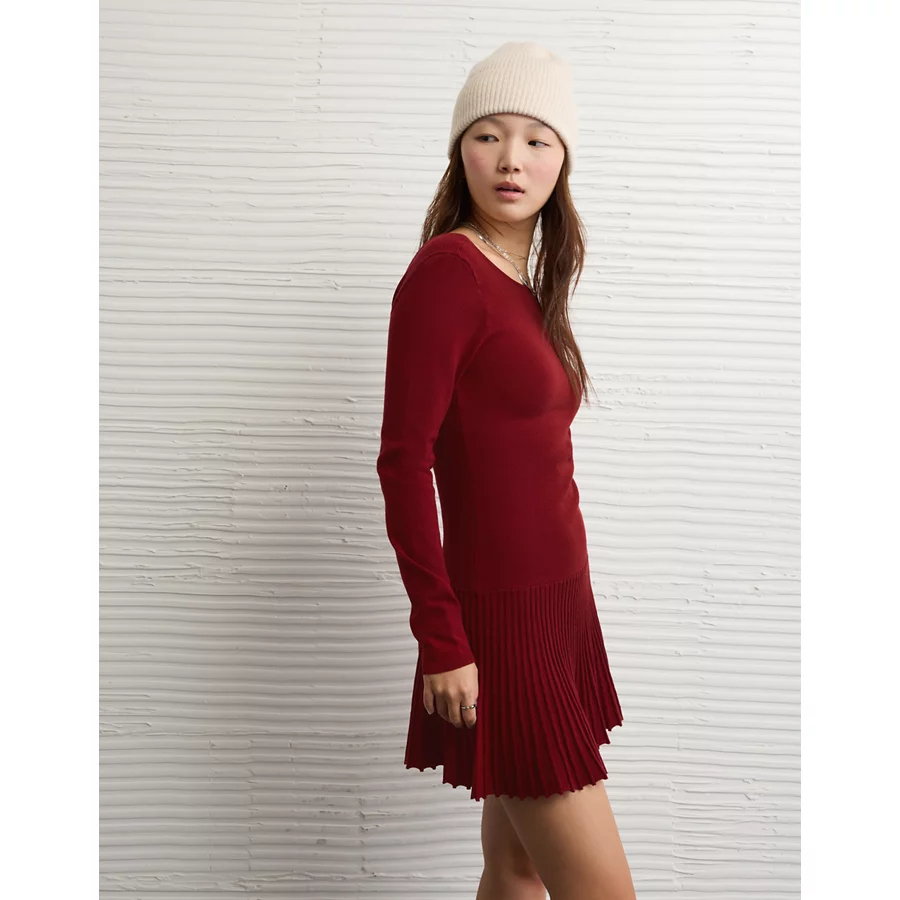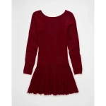 AE Drop Waist Sweater Mini Dress – Warm Red