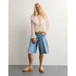 AE 8″ Dreamy Drape Stretch Low-Rise Baggy Jort – White