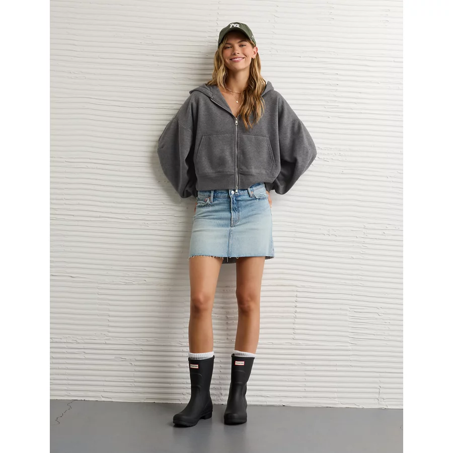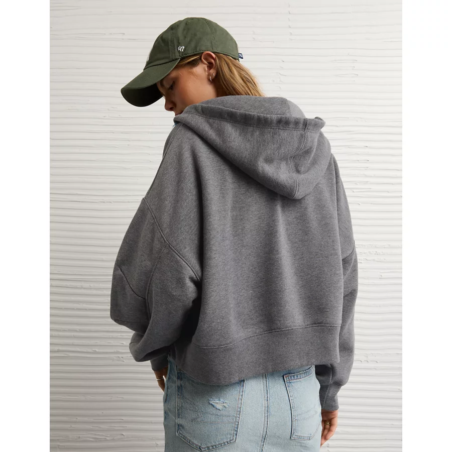 AE Everyday Luxe Barrel Sleeve Full Zip Hoodie – Charcoal Heather Gray