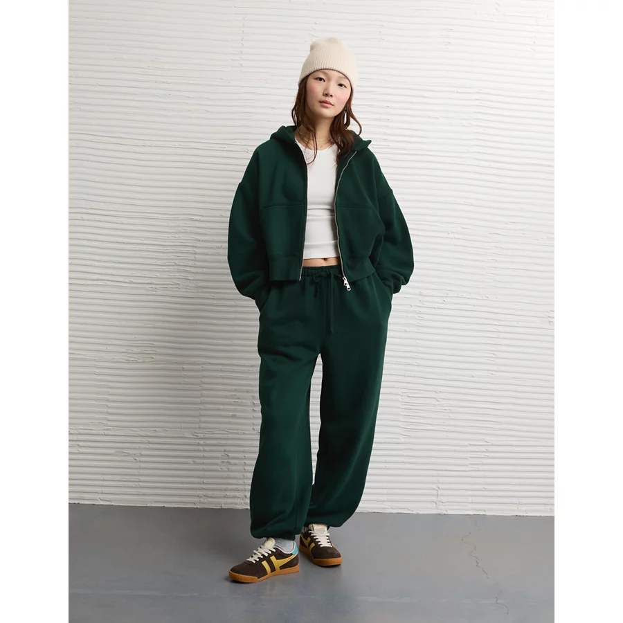 AE Everyday Luxe Barrel Sleeve Full Zip Hoodie – Deep Forest