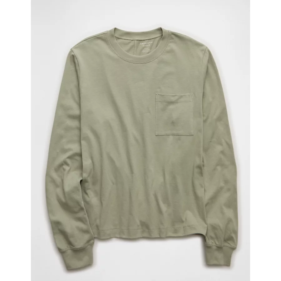 AE Everyday Luxe Long Sleeve T-Shirt – Faded Olive
