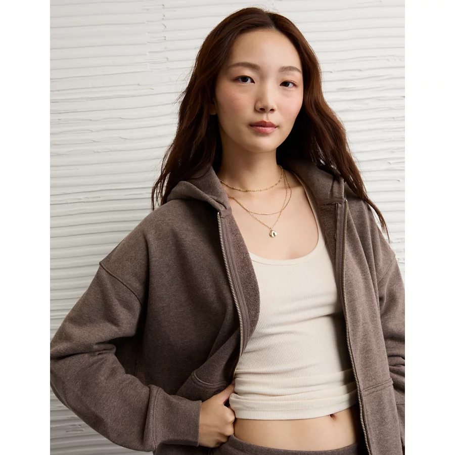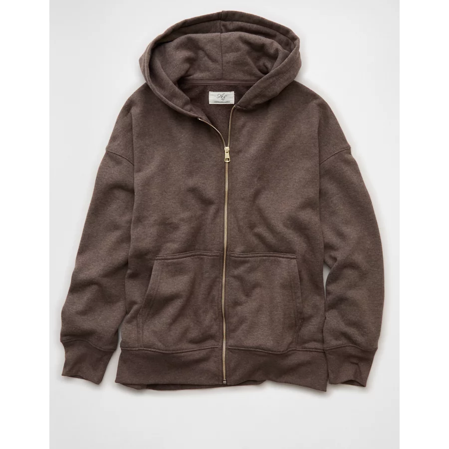 AE Everyday Luxe Oversized Zip-Up Hoodie – Chocolate