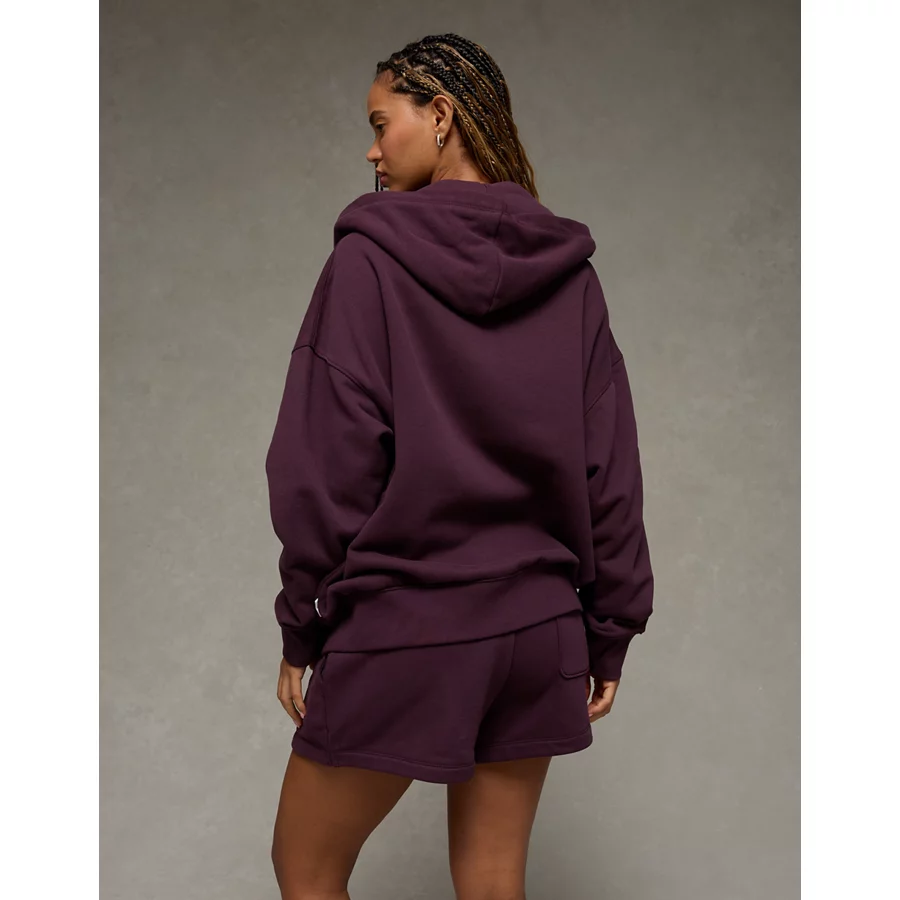 AE Everyday Luxe Oversized Zip-Up Hoodie - Chocolate