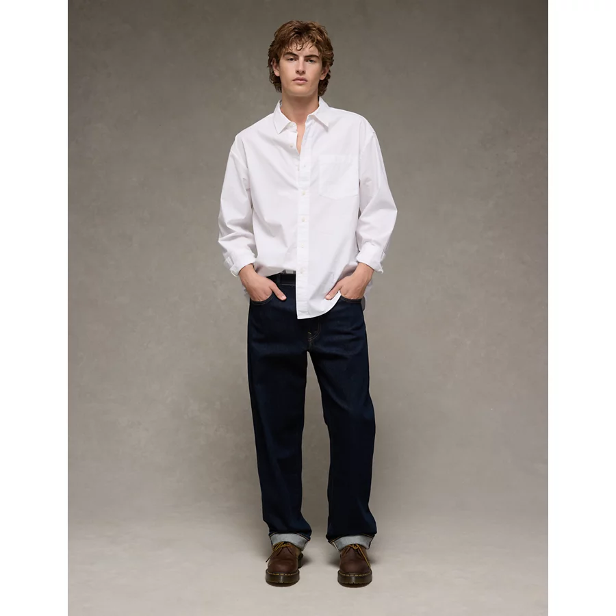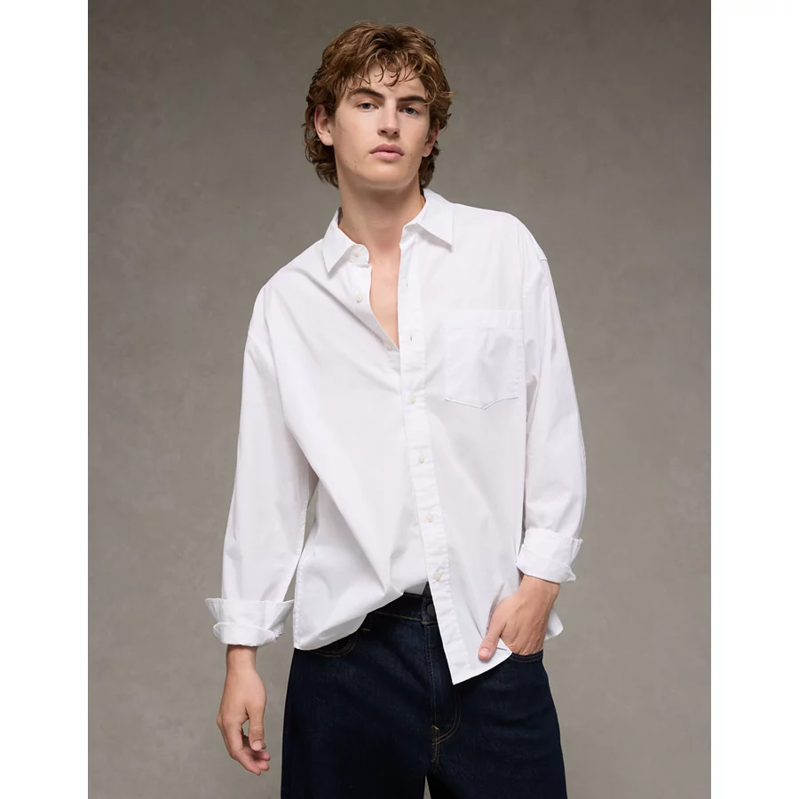 AE Everyday Relaxed Fit Poplin Button-Up Shirt – White