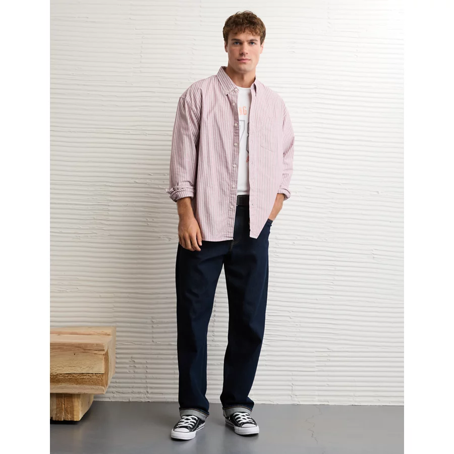 AE Everyday Relaxed Oxford Button-Up Shirt – Red