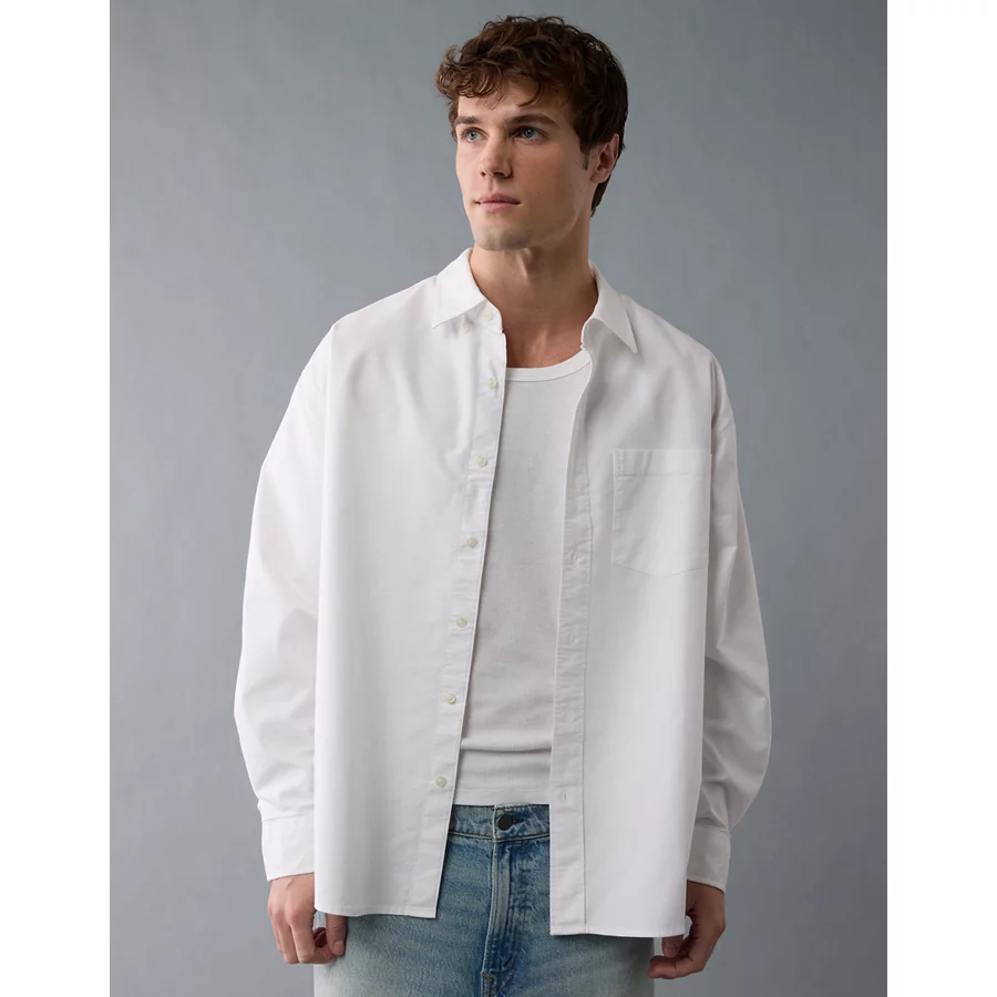 AE Everyday Relaxed Oxford Button-Up Shirt – White