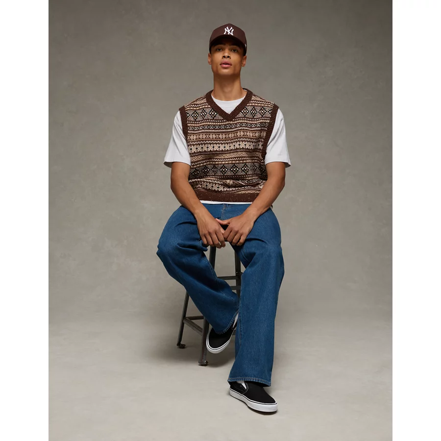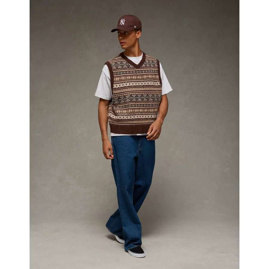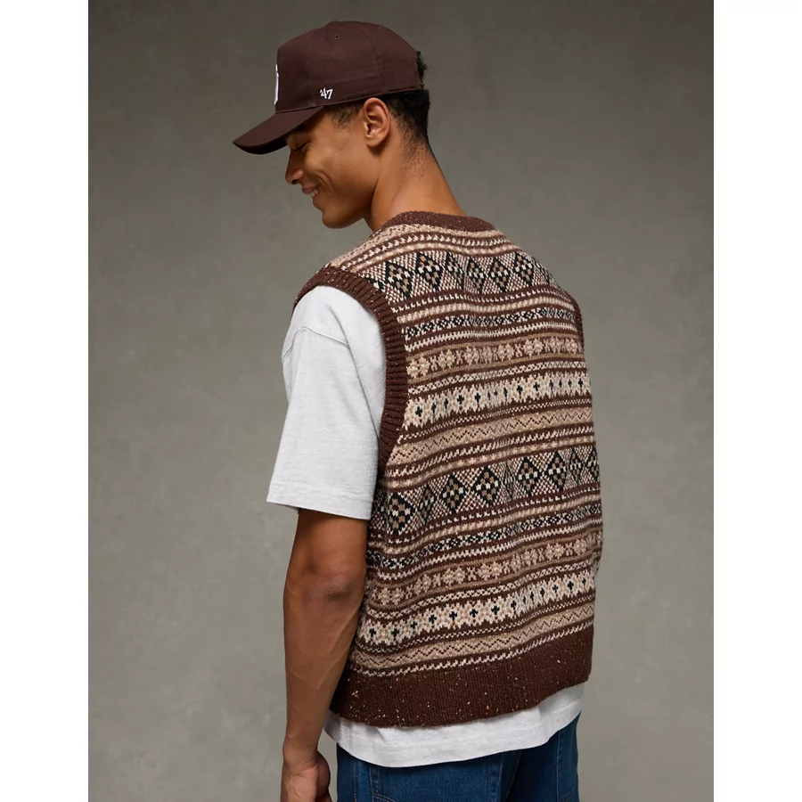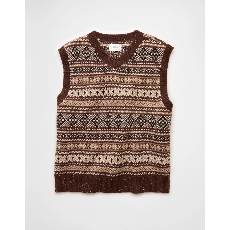 AE Fairisle Sweater Vest – Medium Brown
