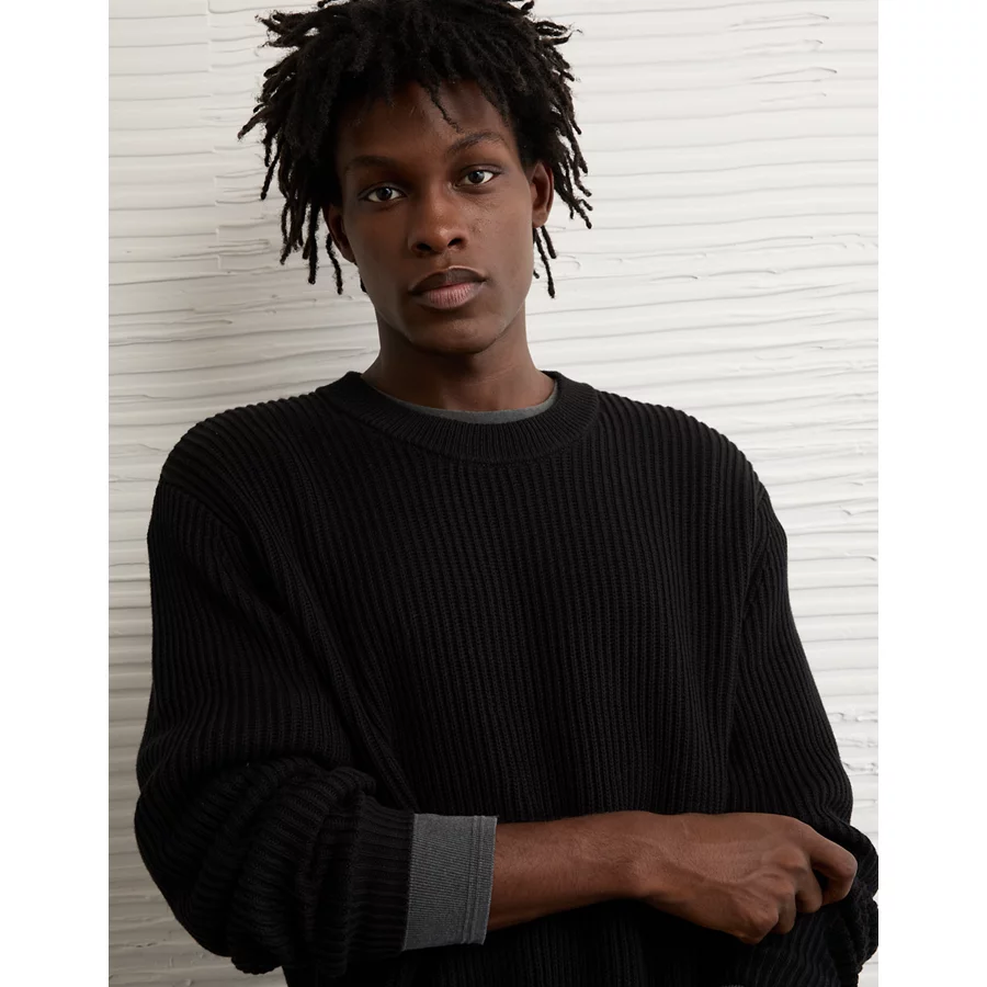 AE Fisherman Crew Neck Sweater – Black