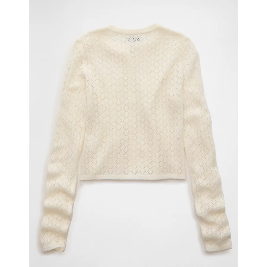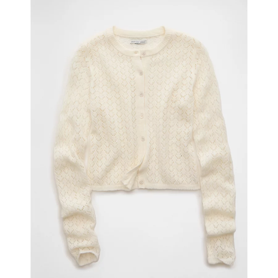AE Fitted Crew Neck Cardigan – Cream