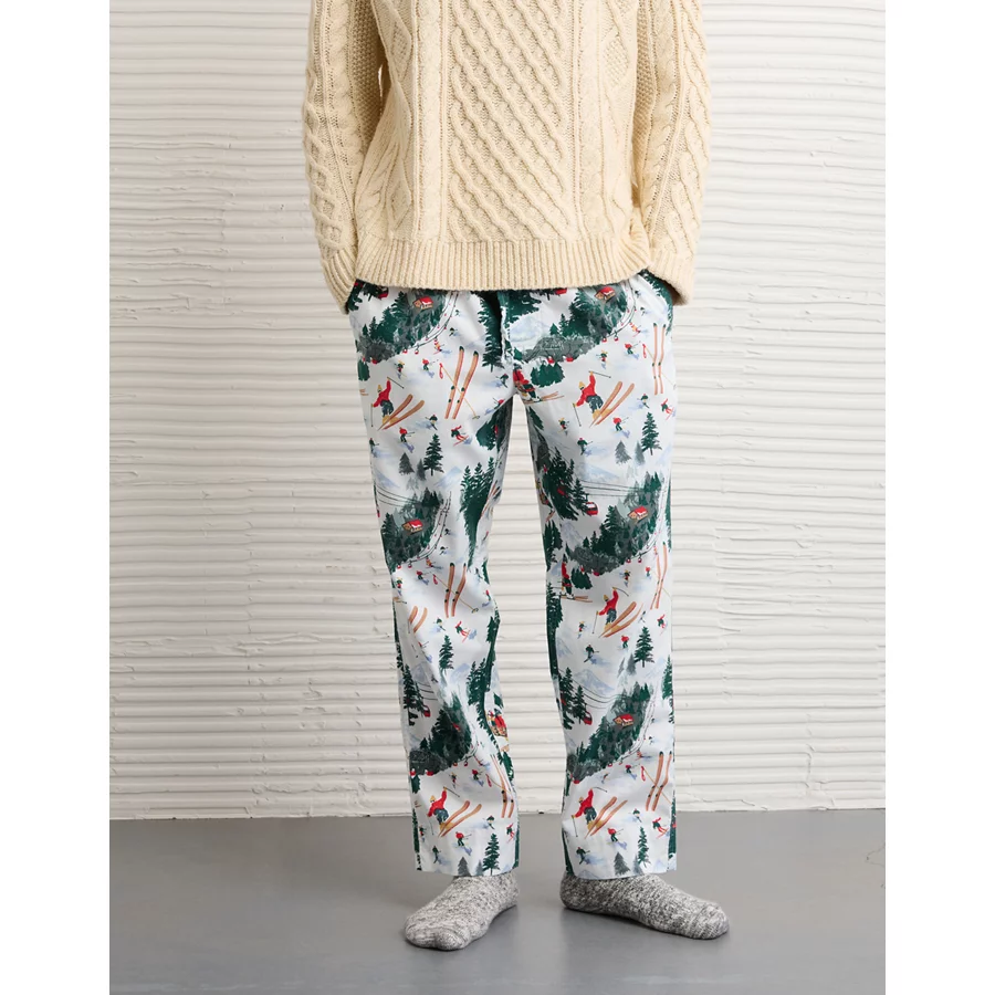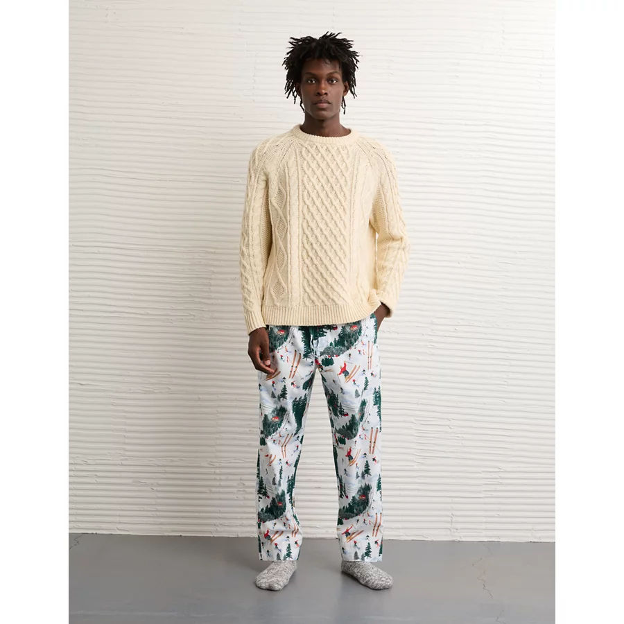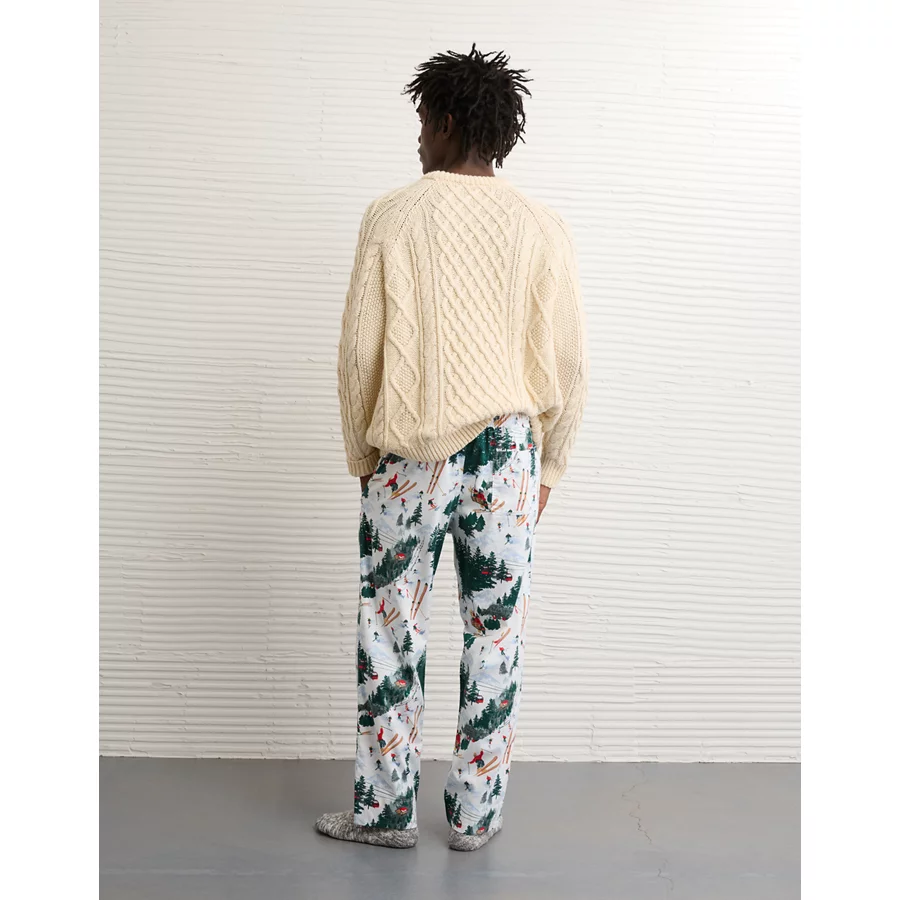 AE Flannel Open Leg PJ Pant – White