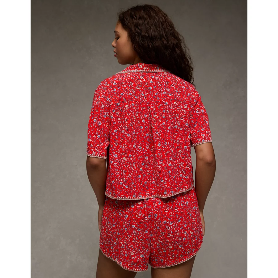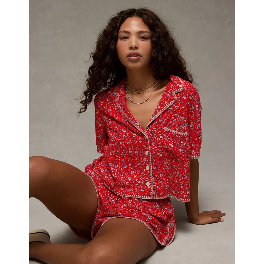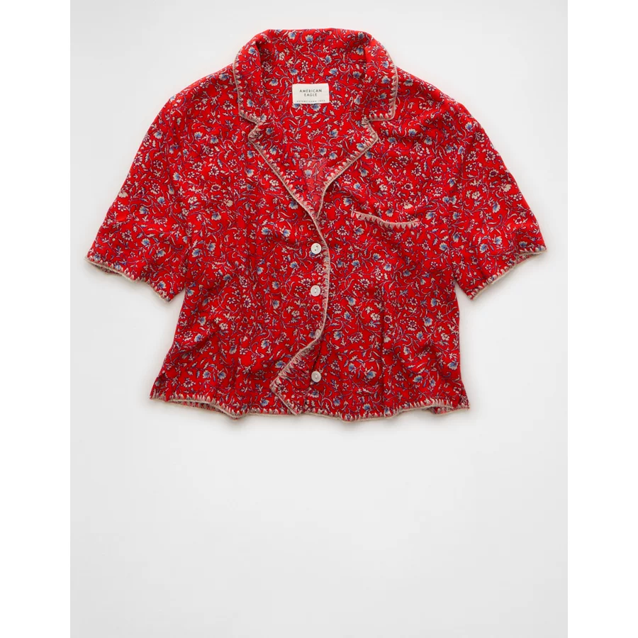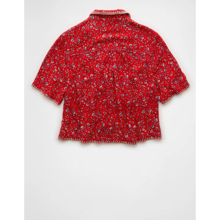AE Floral Button-Up Shirt – Berry