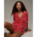 ABO Snoopy Fall Leaves Plush PJ Shirt – Brown