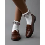 AE Gingham Ruffle Boyfriend Socks 2-Pack – White