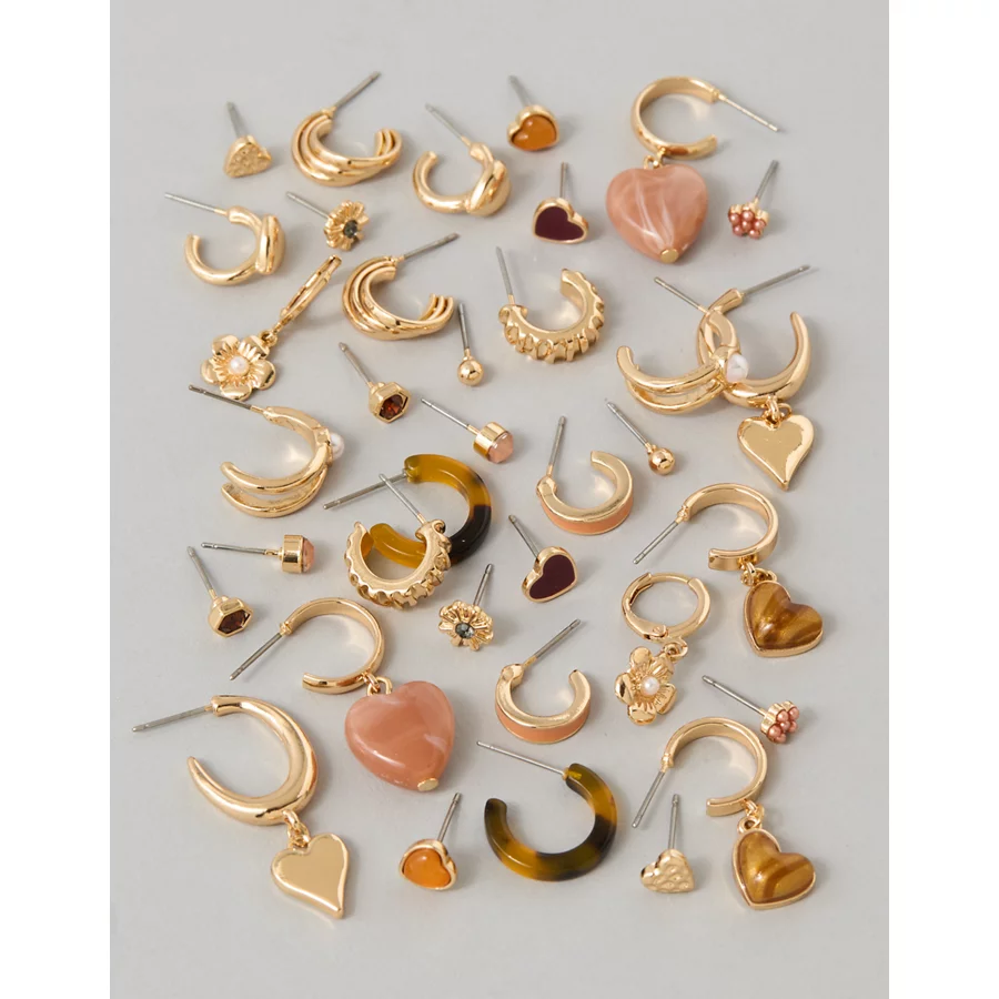 All jewelry is 14K gold-plated: 3 pairs of earrings, 2 necklaces, 1 braceletCozy gifts: Knit hat, a pair of socks,
