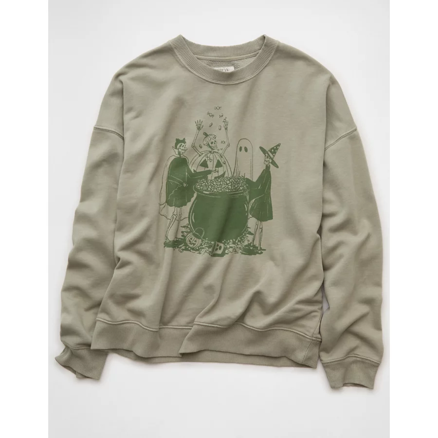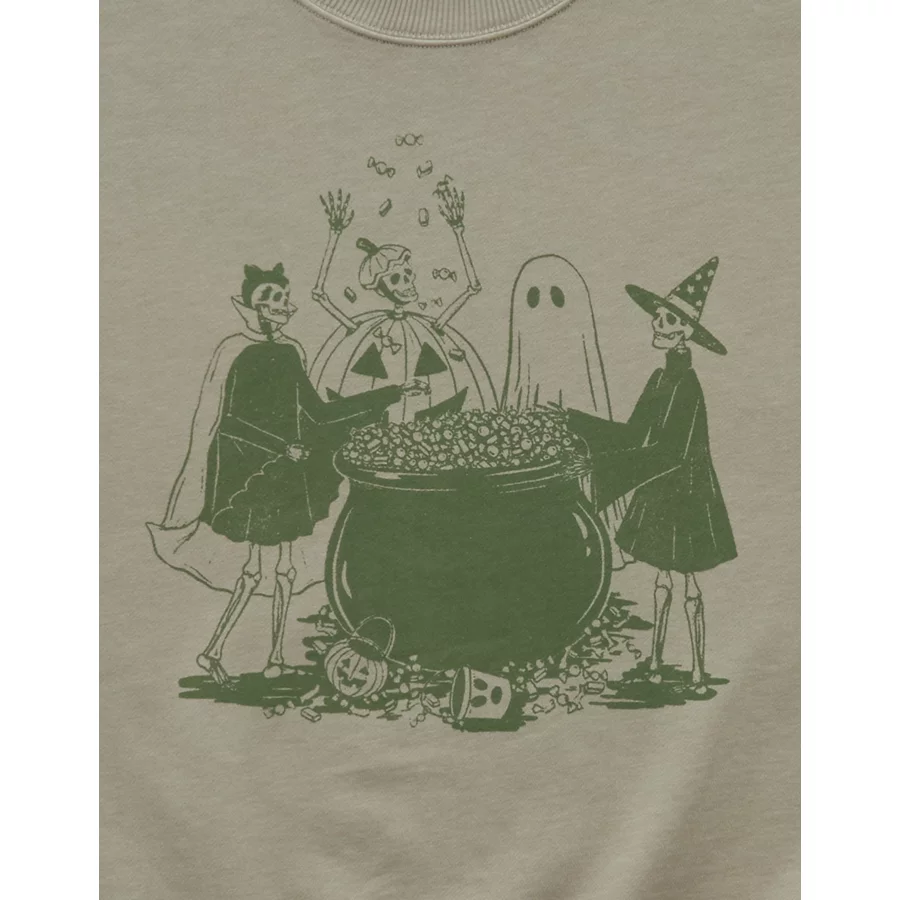 AE Halloween Graphic Sweatshirt – Faded Olive