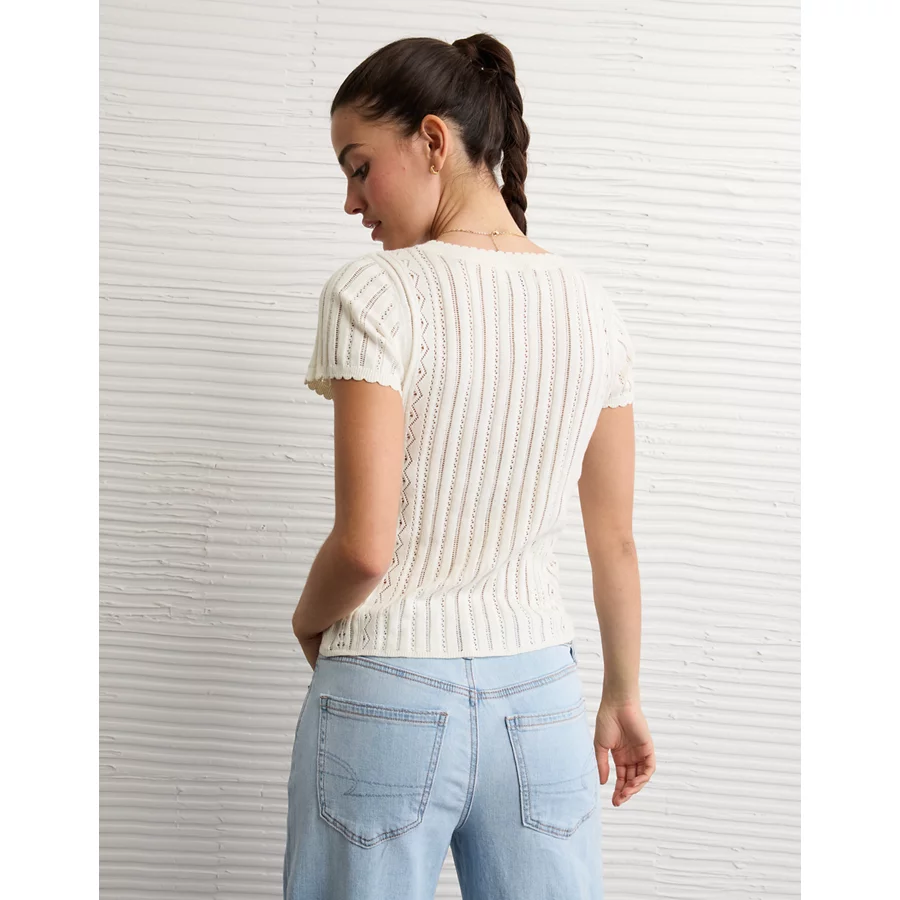 AE Henley Pointelle Sweater T-Shirt – Cream