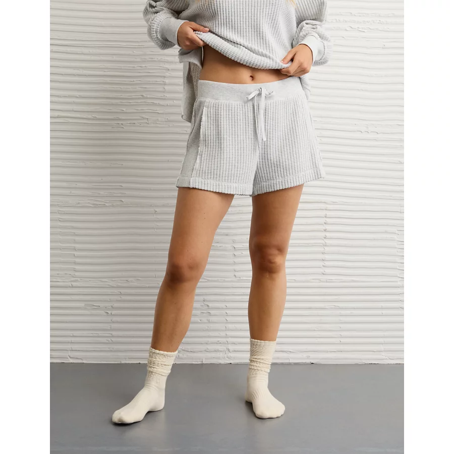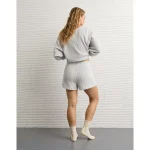 AE High-Waisted Big Hug Fleece Short – Light Heather Gray