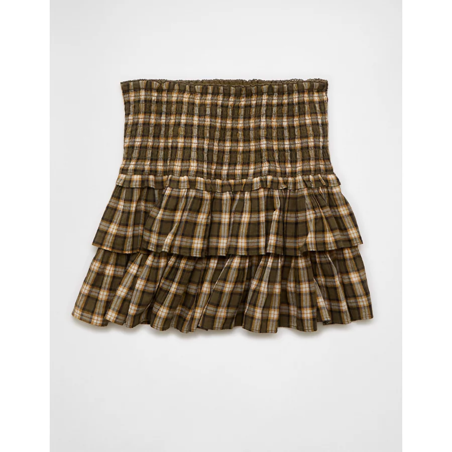 AE High-Waisted Plaid Ruffle Skort – Leaf Green