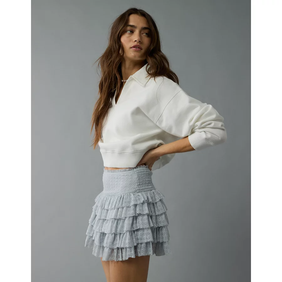 AE High-Waisted Ruffle Mini Skort – Light Blue