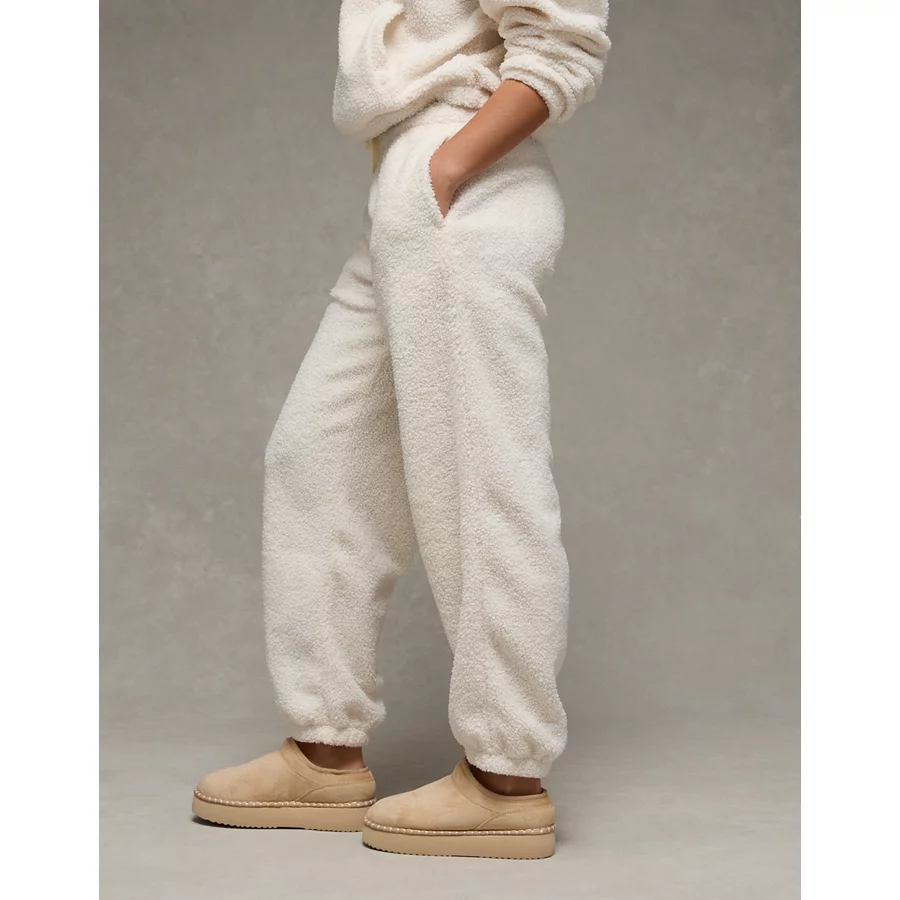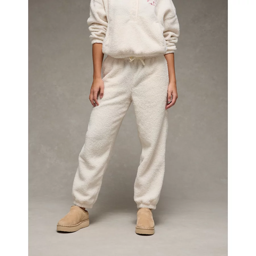 AE High-Waisted Sherpa Jogger Pant – Cream
