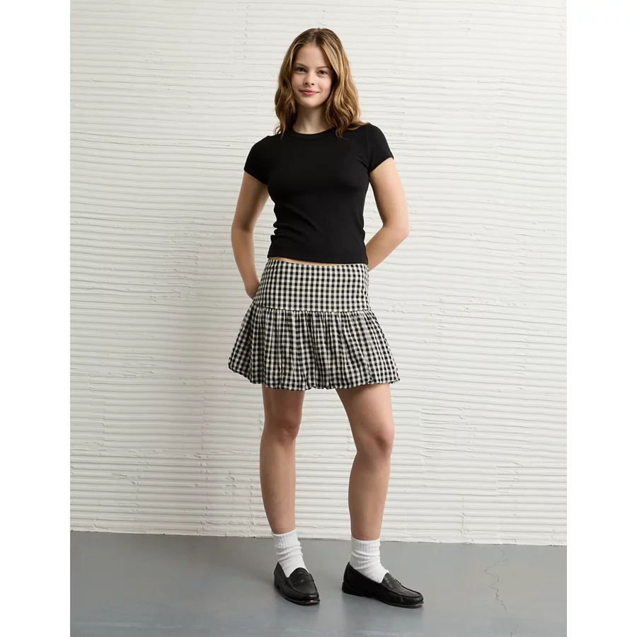 AE High-Waisted Smocked Bubble Skirt - Black