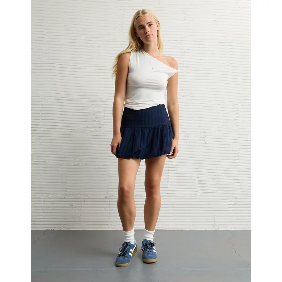 AE High-Waisted Smocked Bubble Skirt – Navy