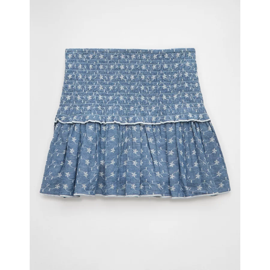AE High-Waisted Smocked Mini Skirt – Light Blue
