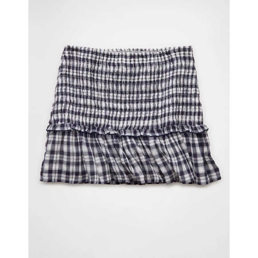 AE High-Waisted Smocked Mini Skirt - Light Blue