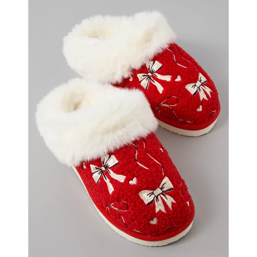 AE Holiday Bows Scuff Slipper – Red