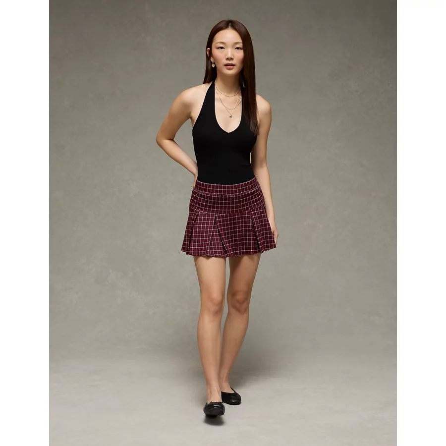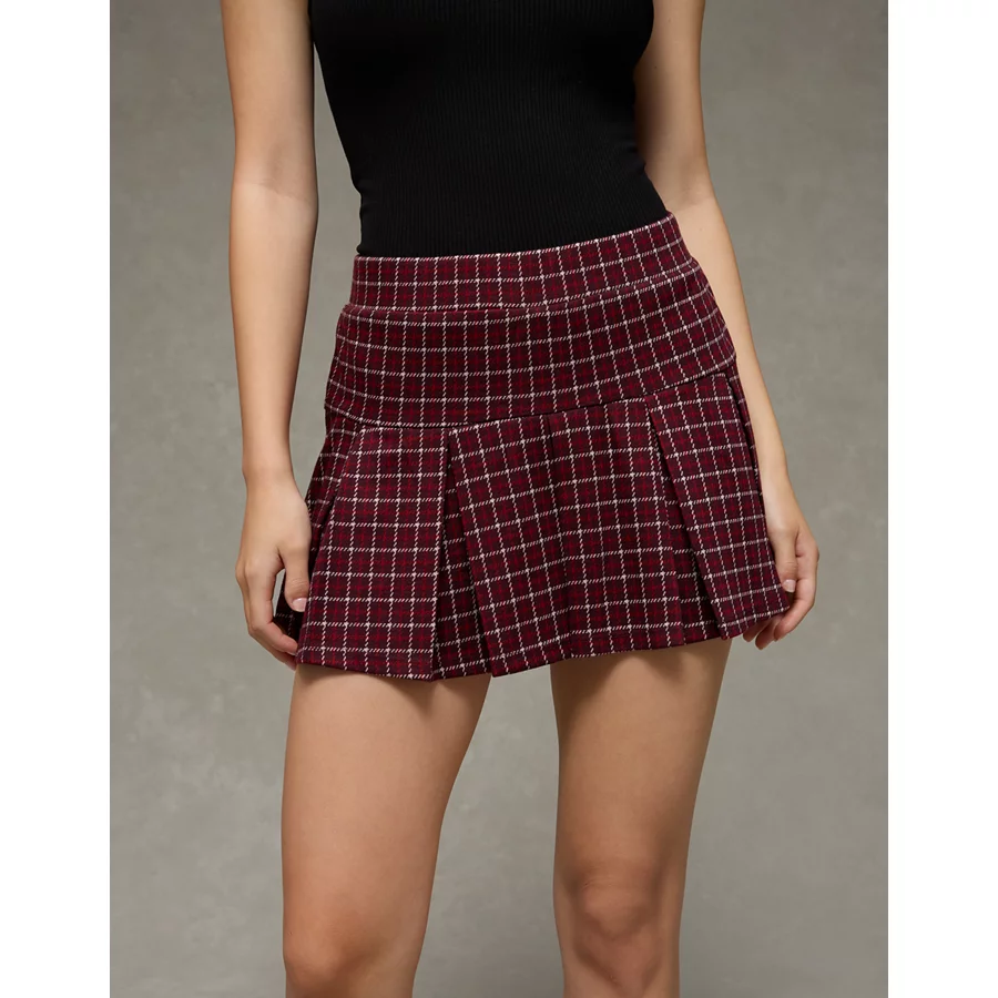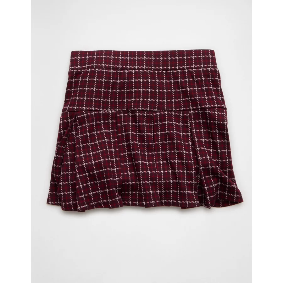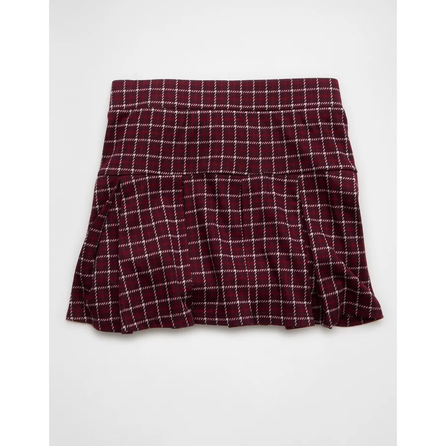 AE It Knit Low-Rise Pleated Plaid Skort – Burgundy