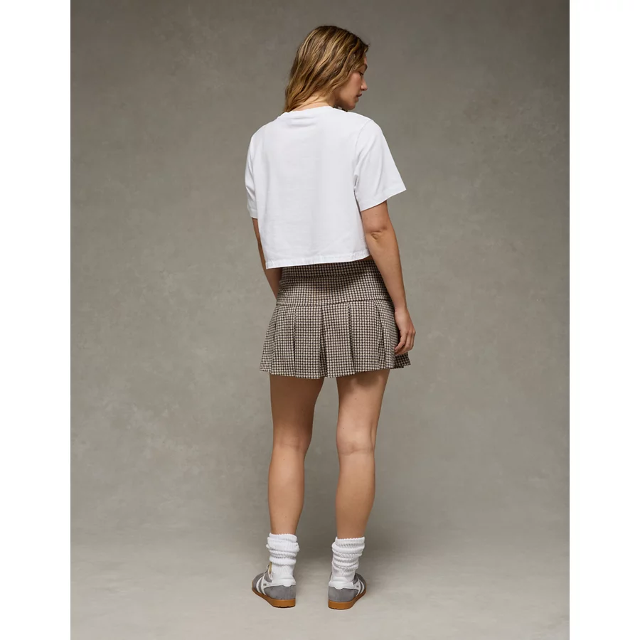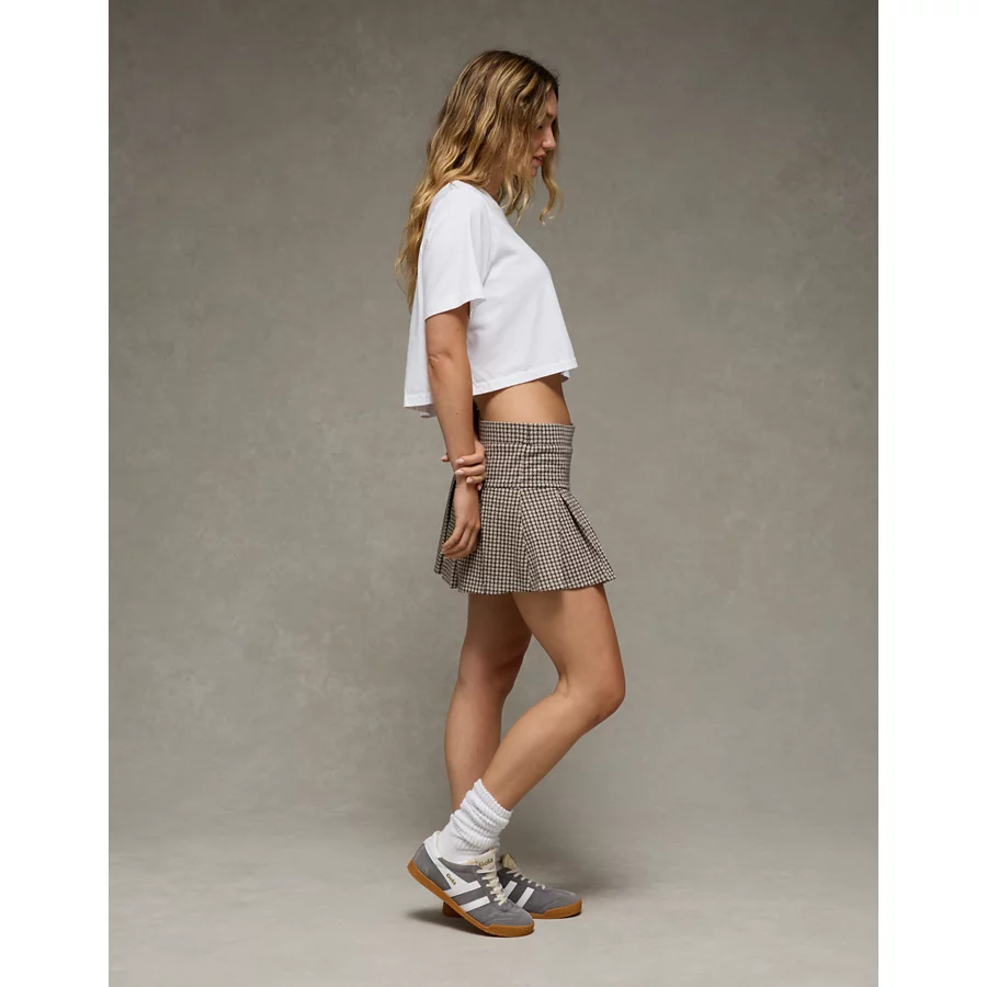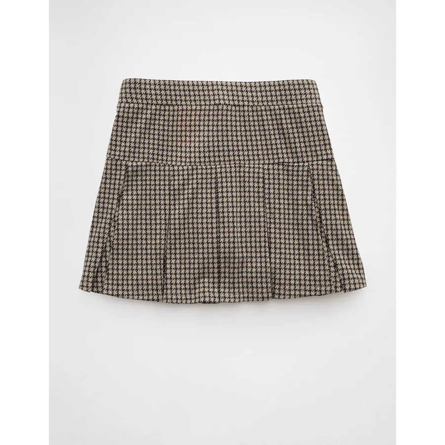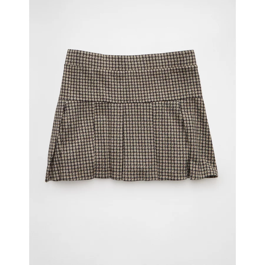 AE It Knit Low-Rise Pleated Plaid Skort – Grey