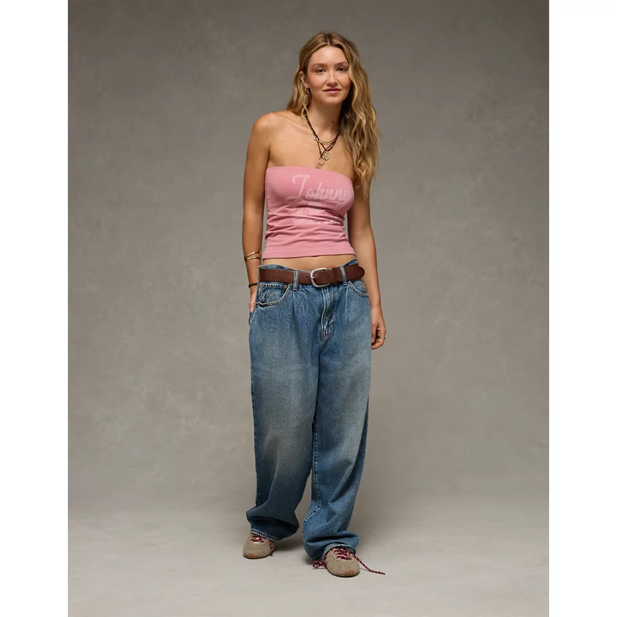 AE 8″ Dreamy Drape Stretch Low-Rise Baggy Jort – White
