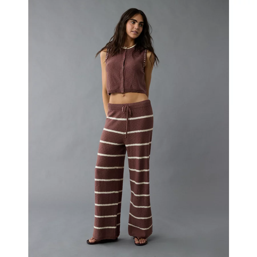 AE Knit Wide-Leg Striped Pant – Light Brown