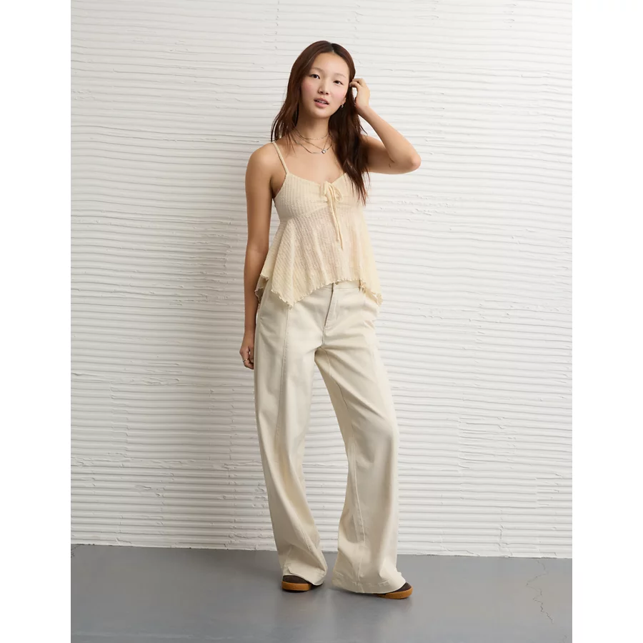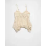 AE Lace Handkerchief Hem Ruffle Mini Dress - Cream