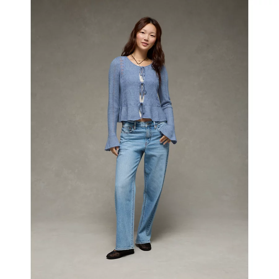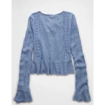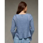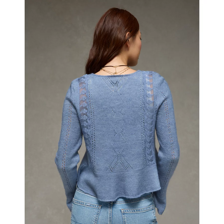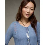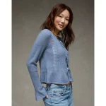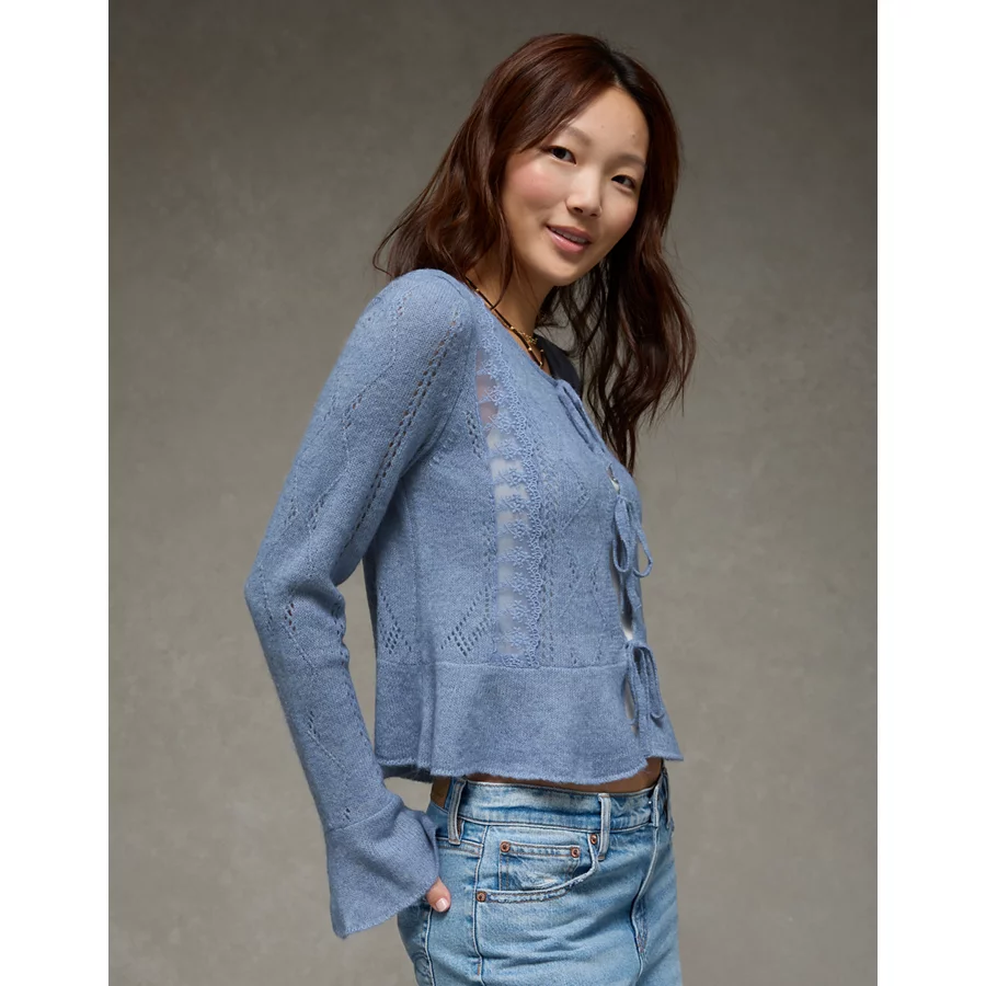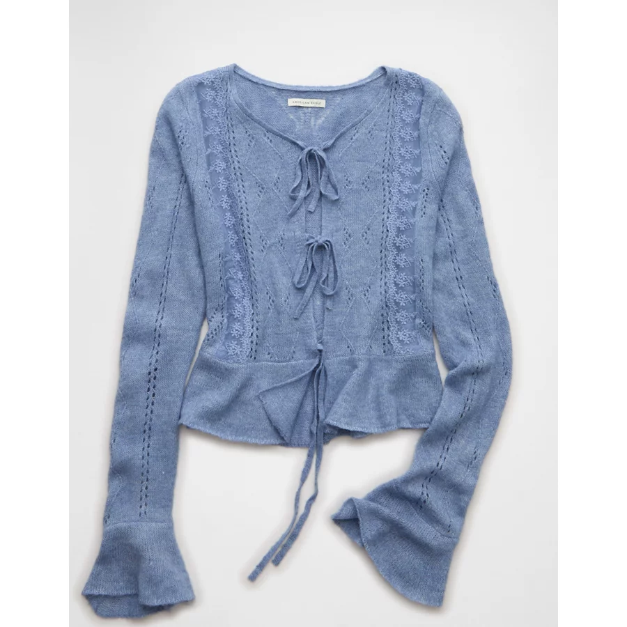 AE Lace Knit Tie-Front Cardigan – Blue