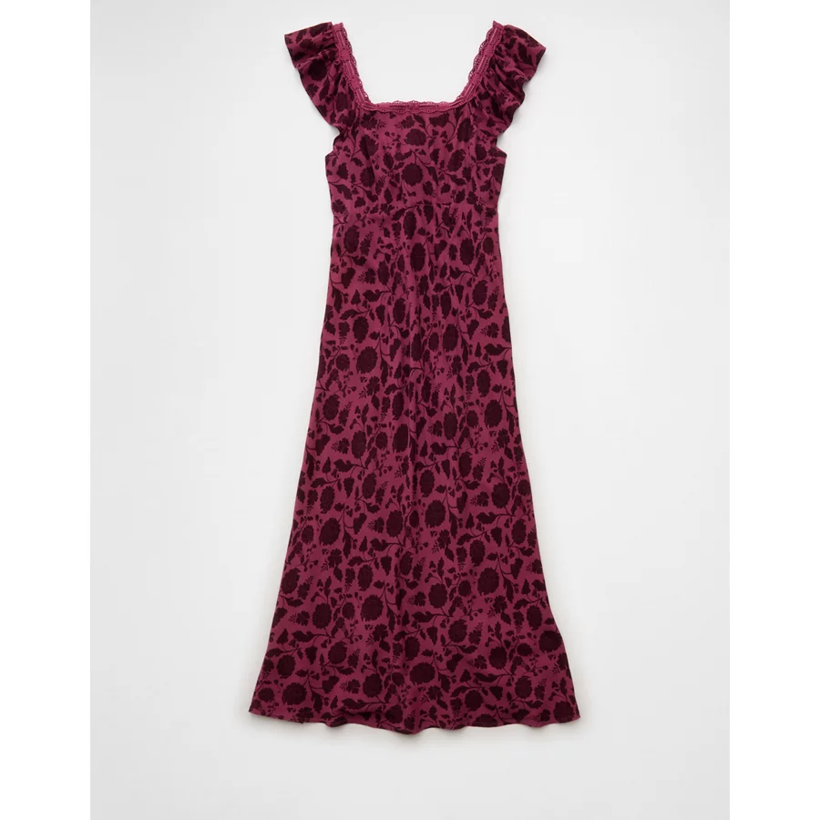 AE Lace Trim Midi Dress – Burgundy