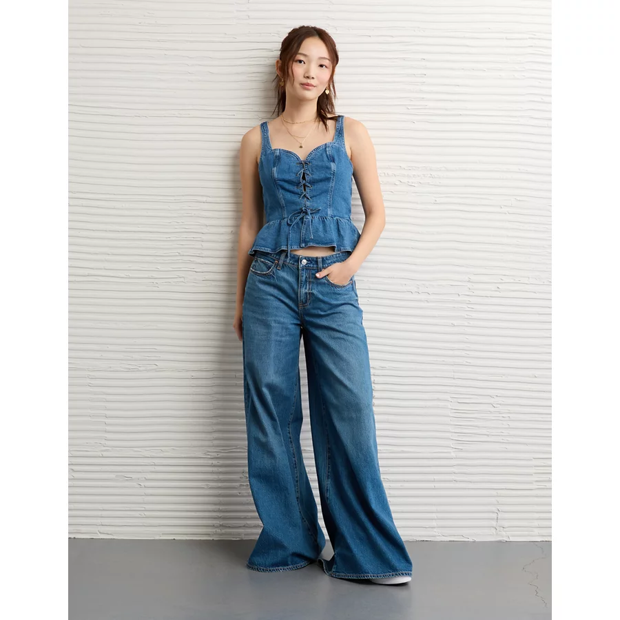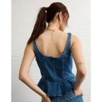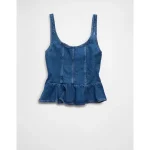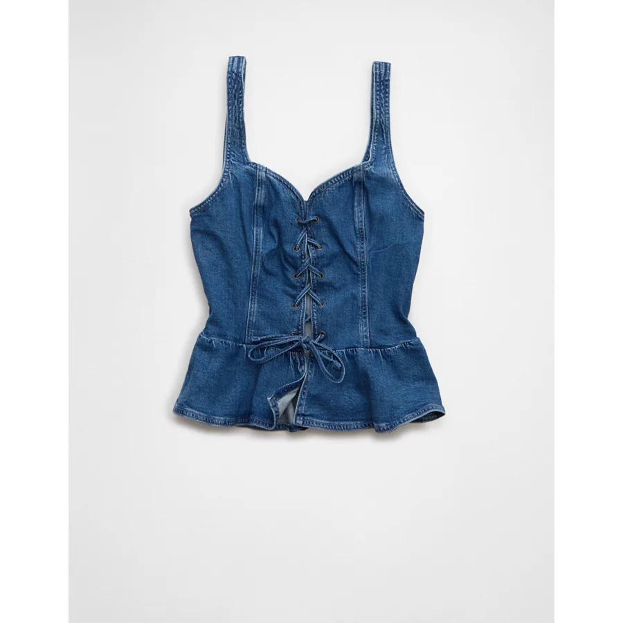 AE Lace-Up Denim Bustier Top – Medium Wash