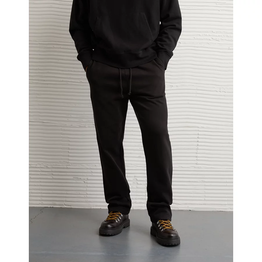 AE Laidback Luxe Heavyweight Open-Hem Sweatpant – Black