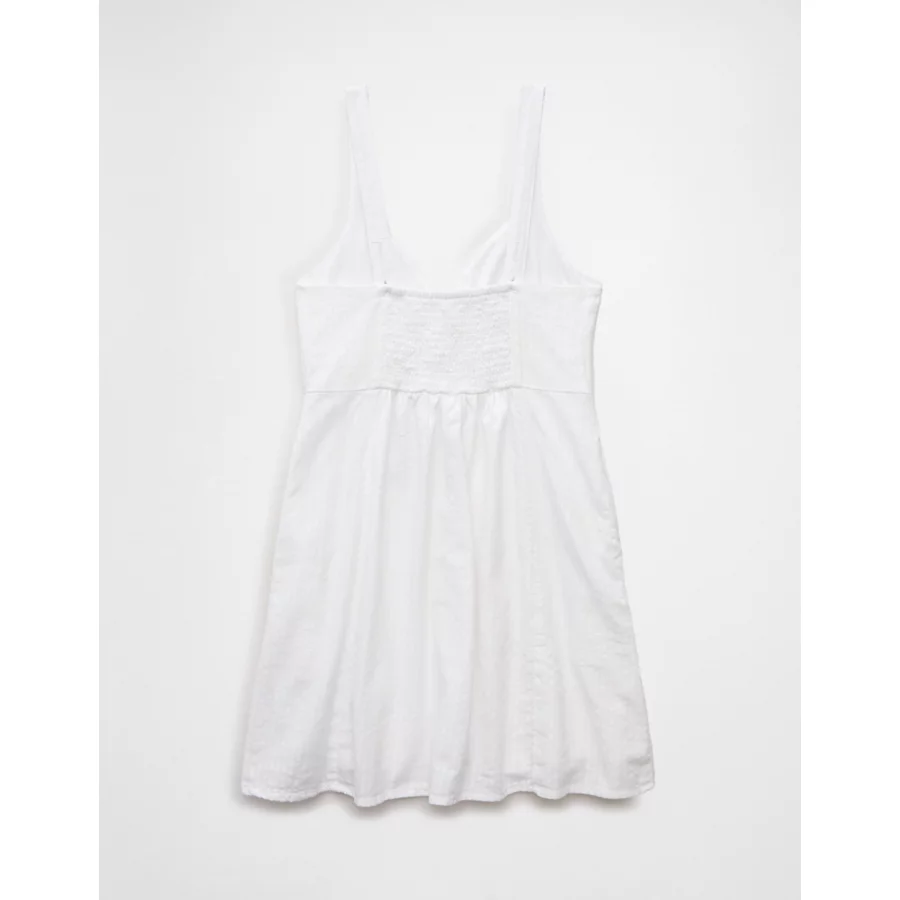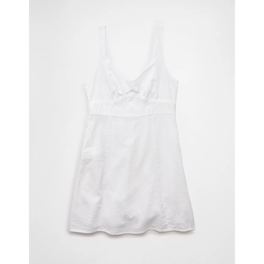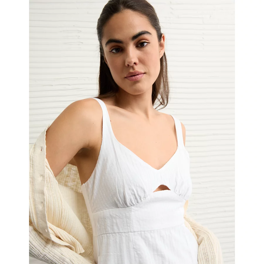 AE Linen-Blend Cut-Out Mini Dress – Ecru Denim