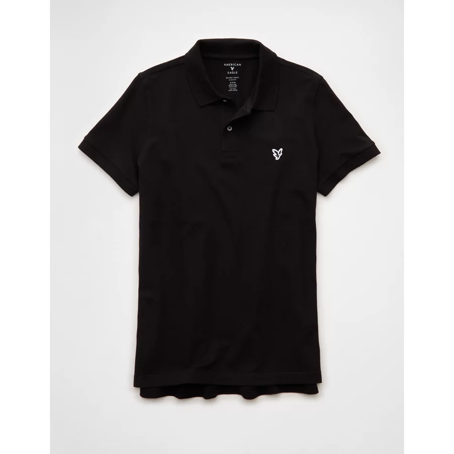 AE Lived-In Slim Fit Pique Polo Shirt – Black