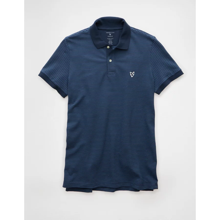 AE Lived-In Slim Fit Pique Polo Shirt – Blue