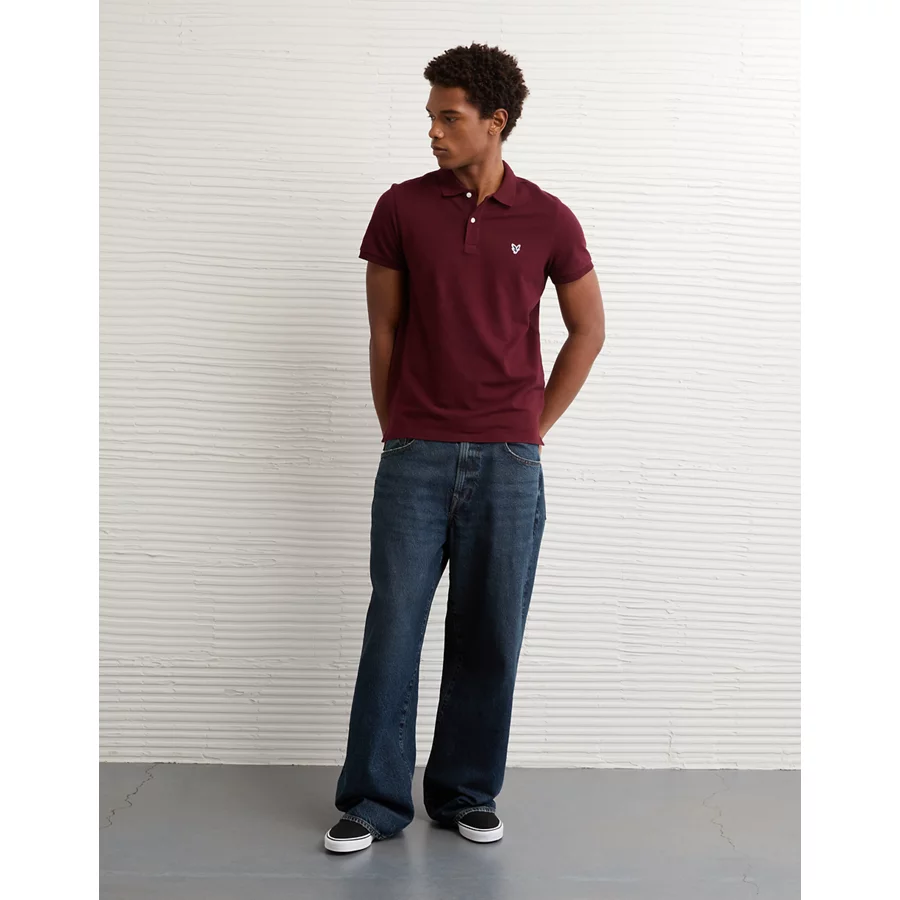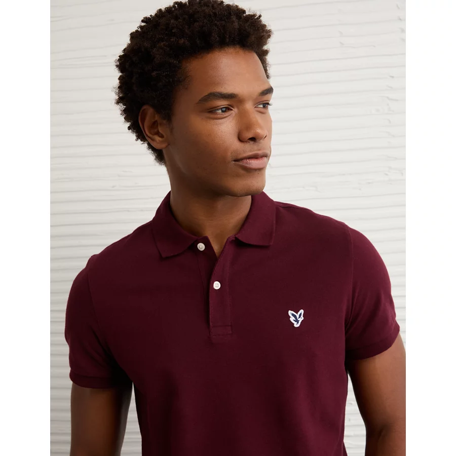 AE Lived-In Slim Fit Pique Polo Shirt – Burgundy