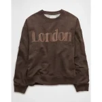 AE London Velvet Graphic Crew Neck Sweatshirt – Coffee