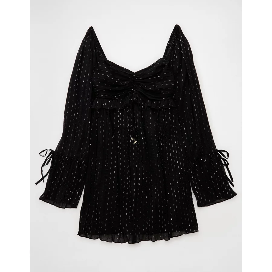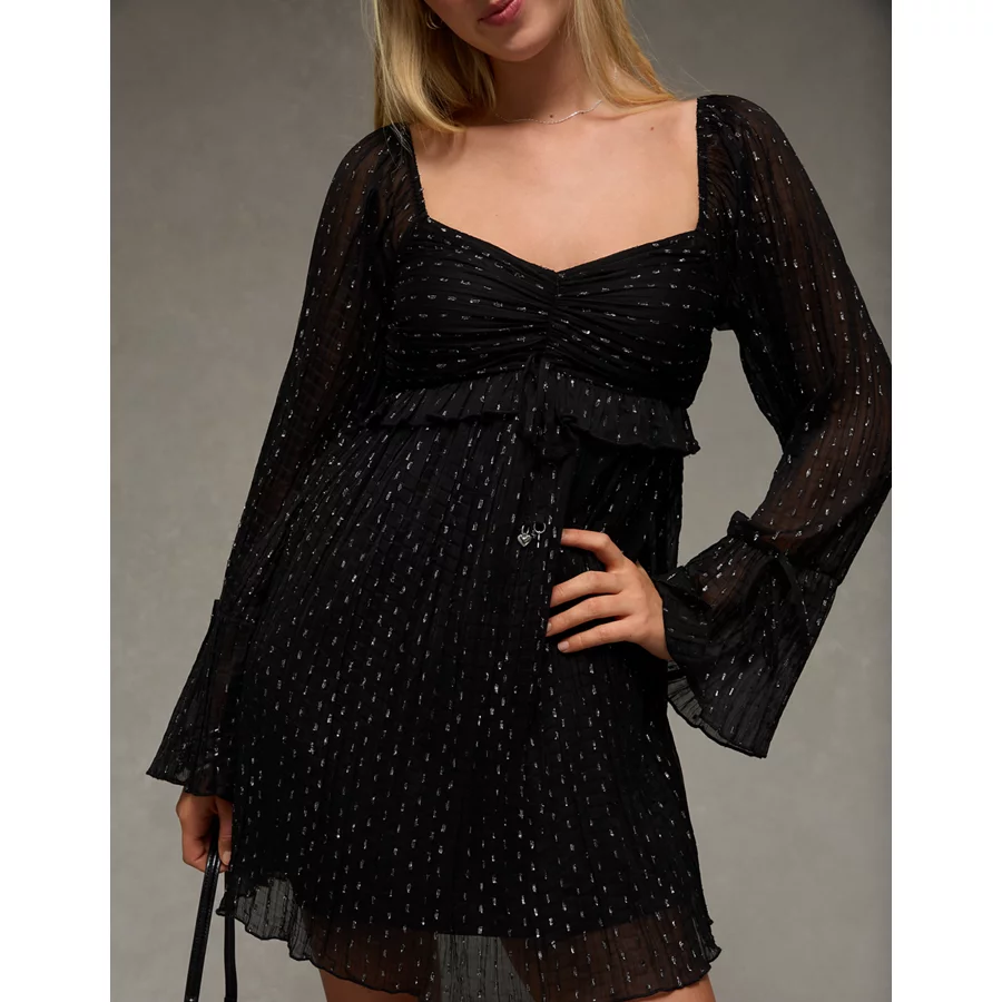 AE Long Sleeve Babydoll Mini Dress - Purple