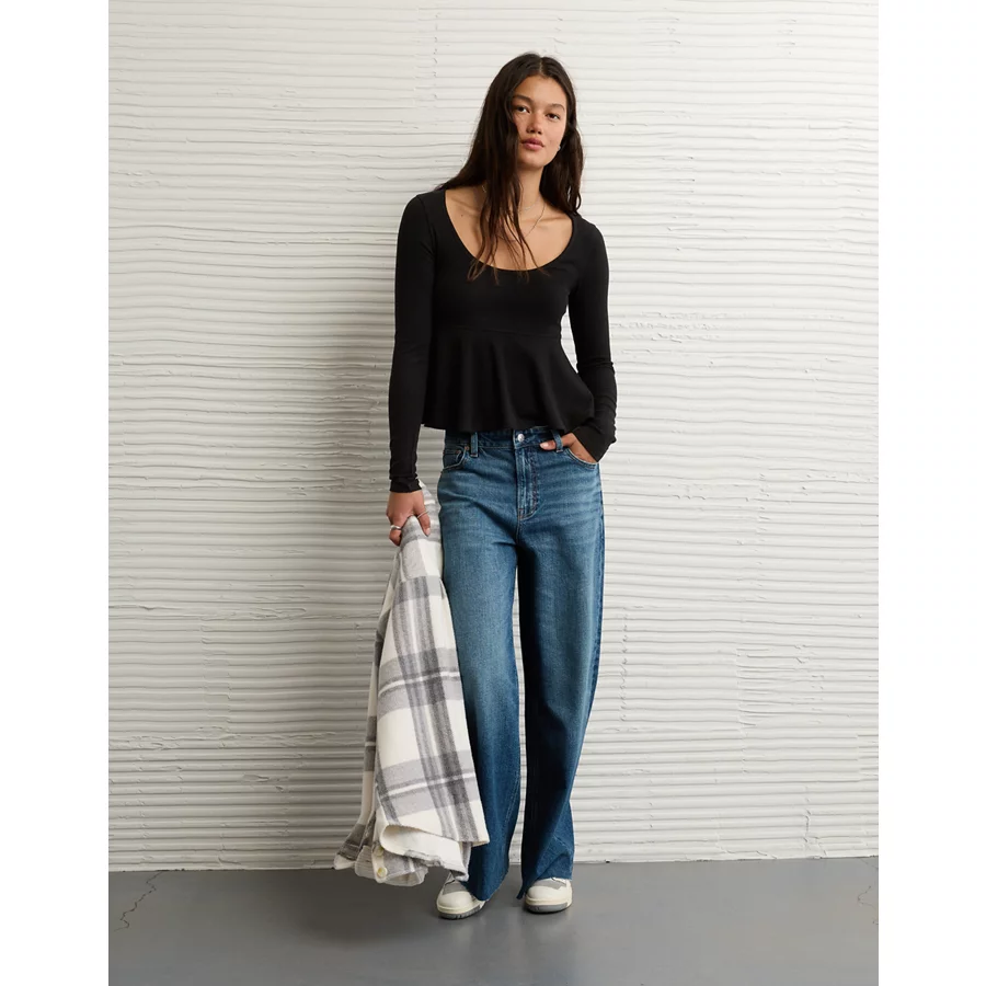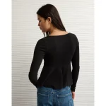 AE Long Sleeve Babydoll Top – Black